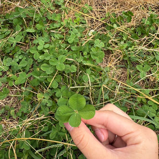 りんご農園でまさかの四葉のクローバー🍀この先いいことが起こりそうです☺️